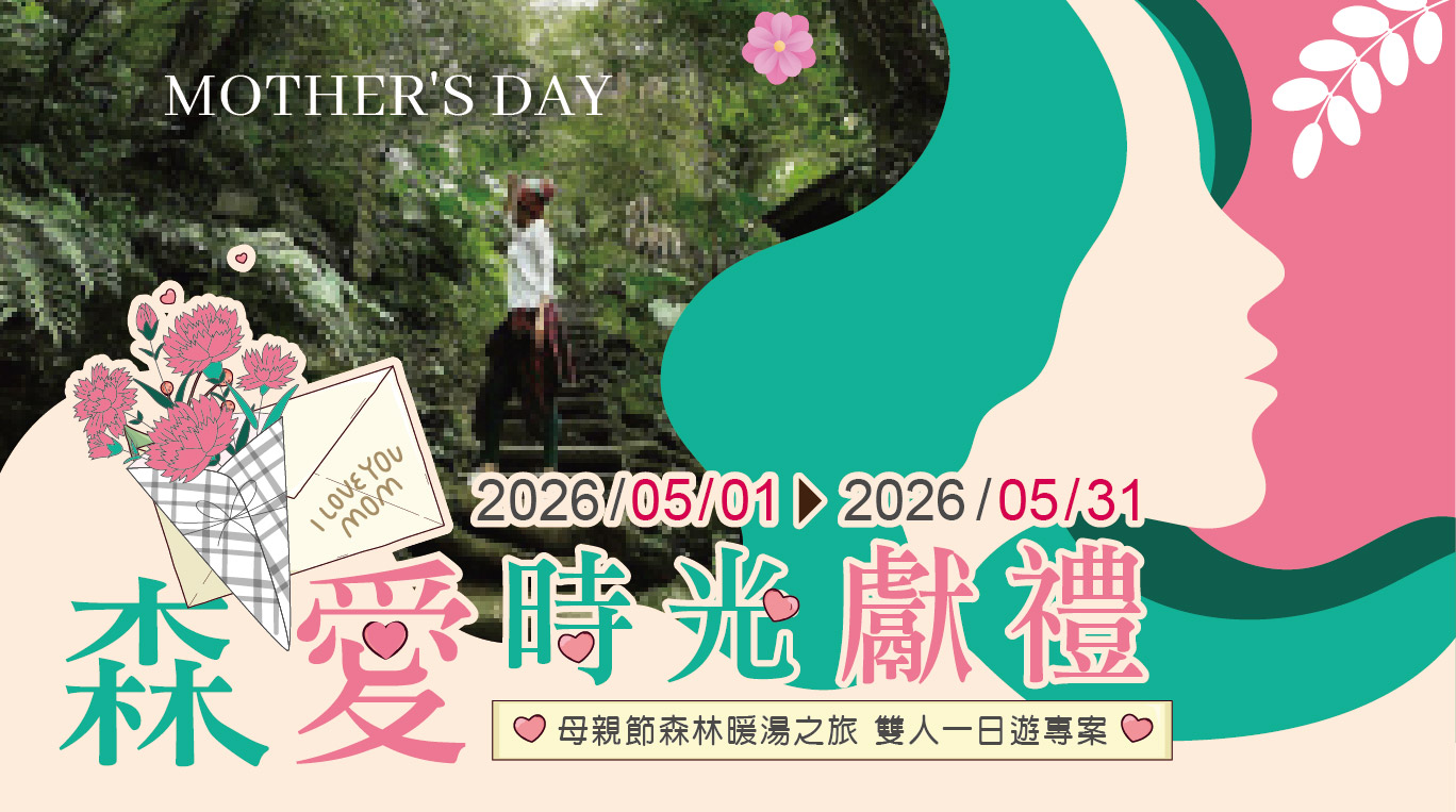 這個屬於媽媽的日子,以森林為景,以暖湯為伴,不妨帶她走進一片綠意山林,讓節奏慢下來,讓心也靜下來在森林環繞與溫泉暖意之間,為她安排一段真正放鬆的療癒時光。