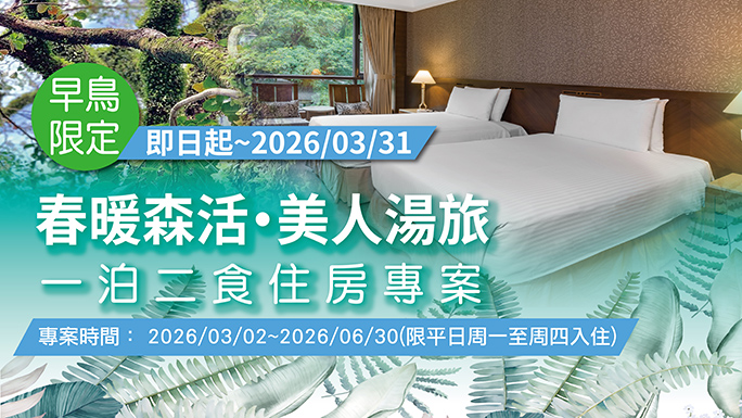 早鳥訂房預購:即日起~2026 / 03 / 31
