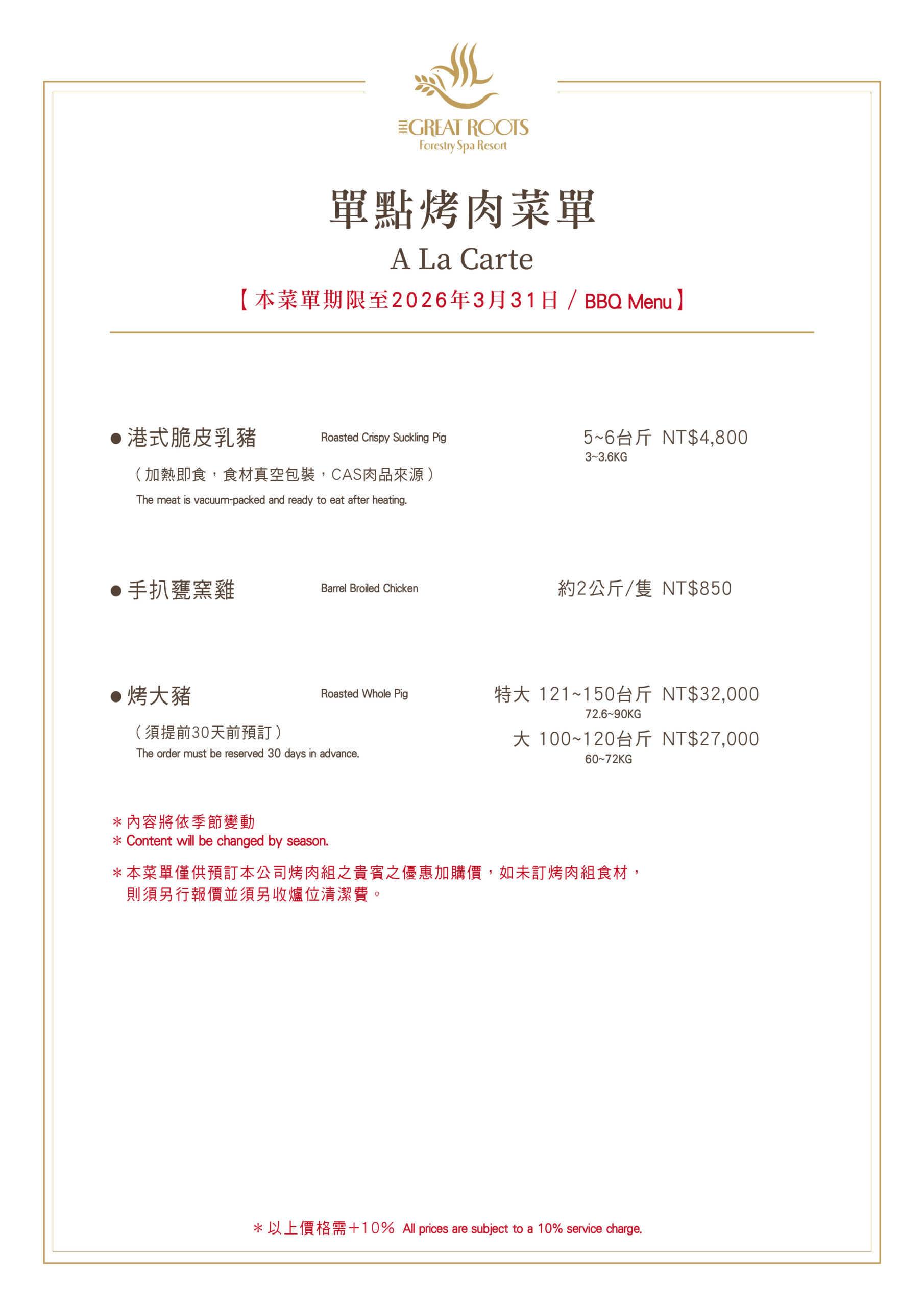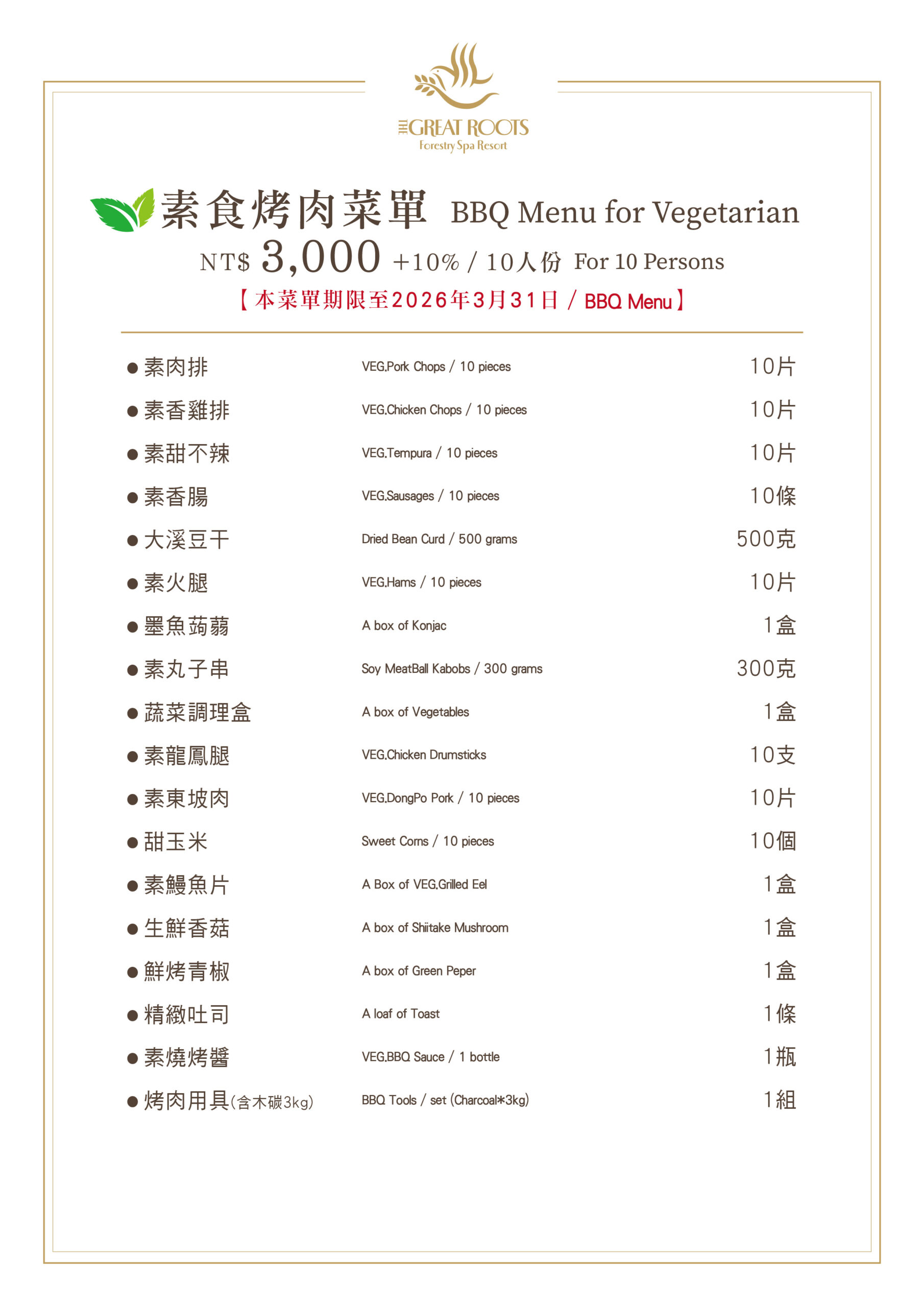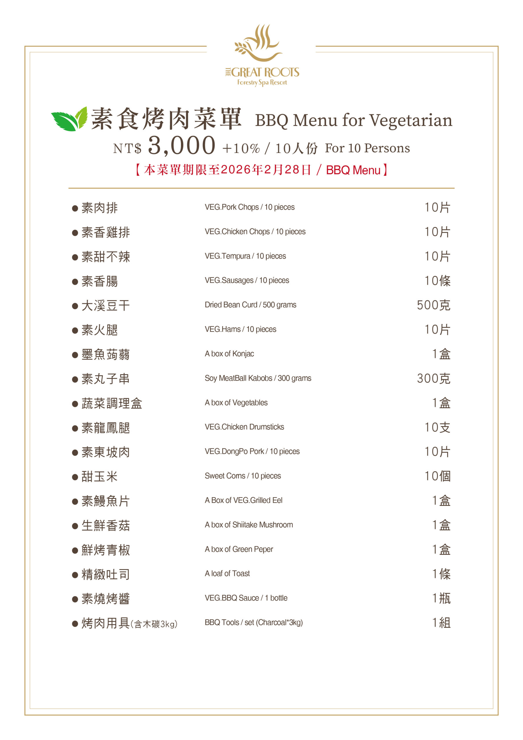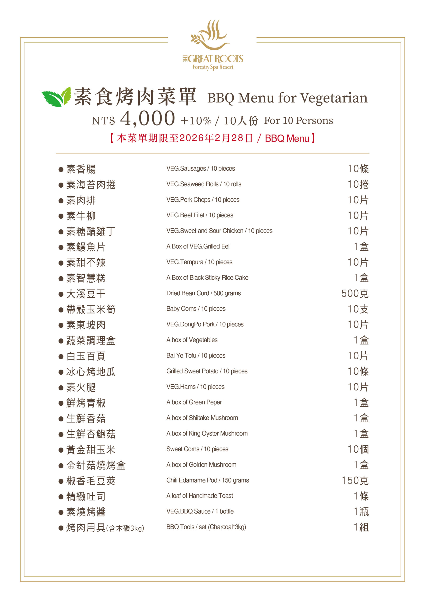 → 素食烤肉菜單 NT$3,000(連結) & NT$4,000(連結)