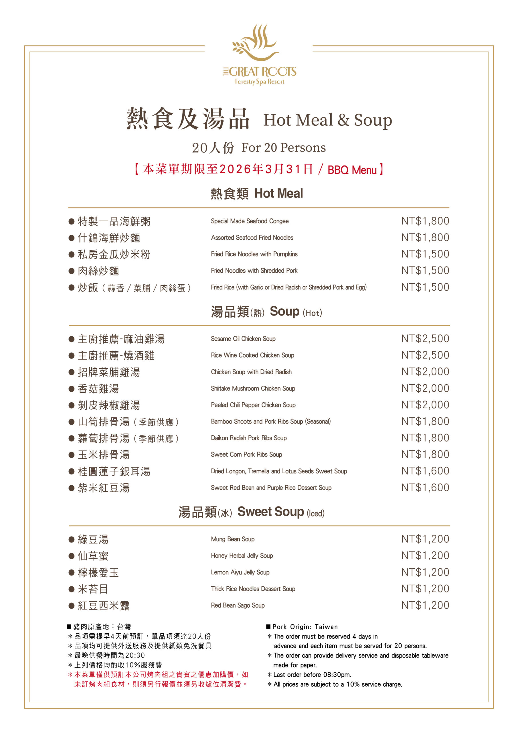 → 晚烤住宿20人份熱食及湯品