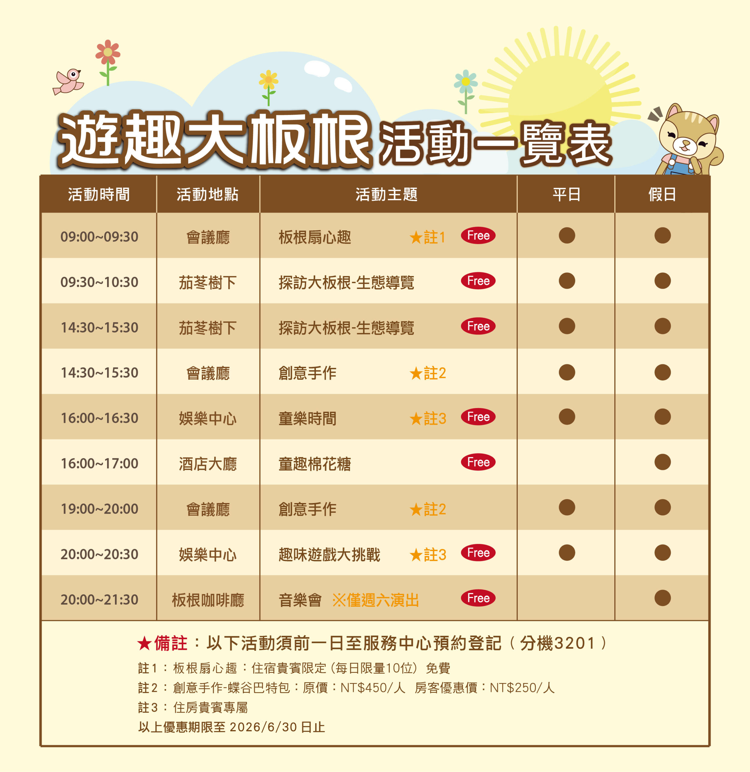 ● 平、假、旺日定義依大板根官網公告為準。(連結)。