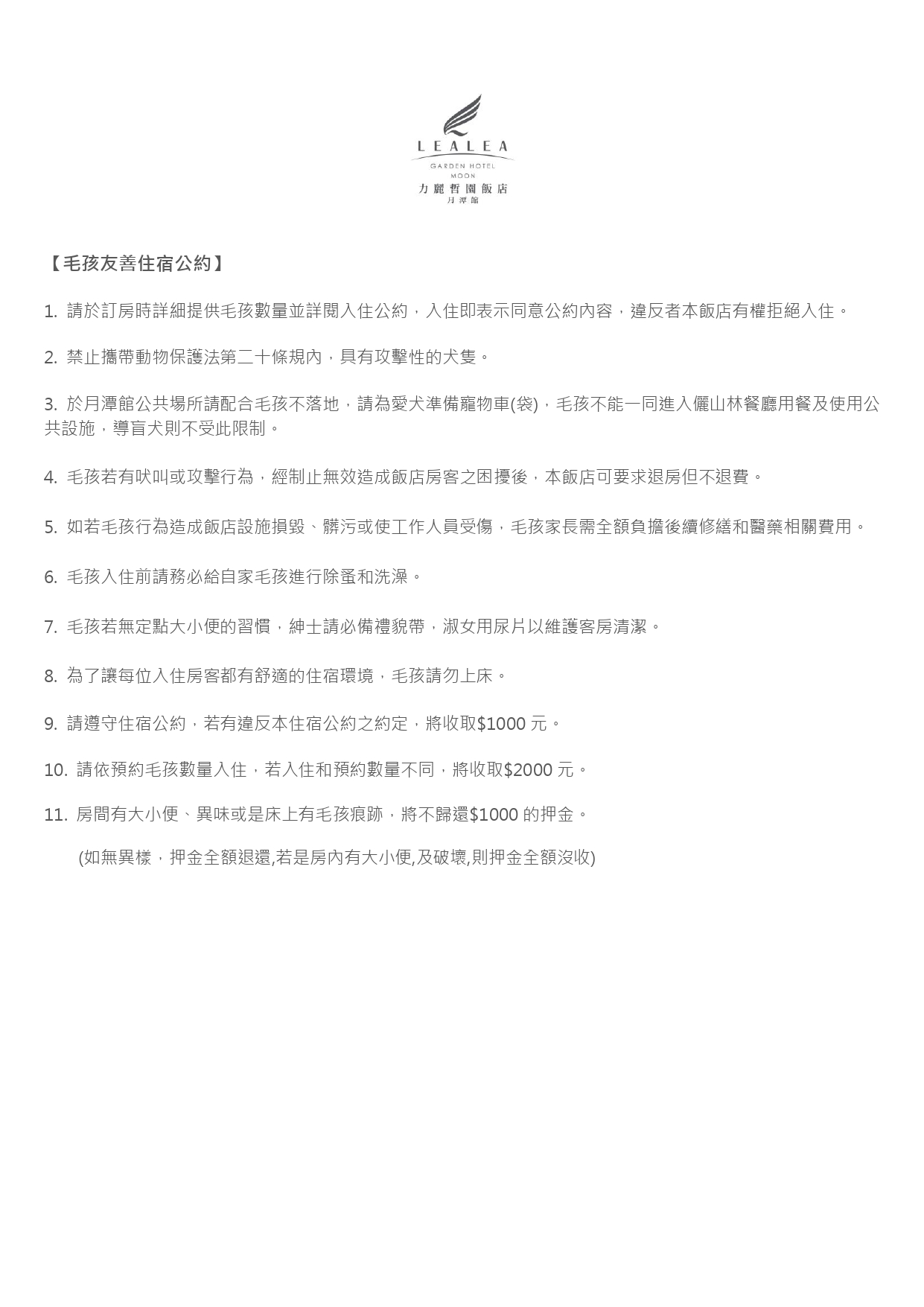 1.大板根平日芬多精寵物雙人房+平日力麗哲園月潭寵物雙人房住宿券一張 / 只要9499元