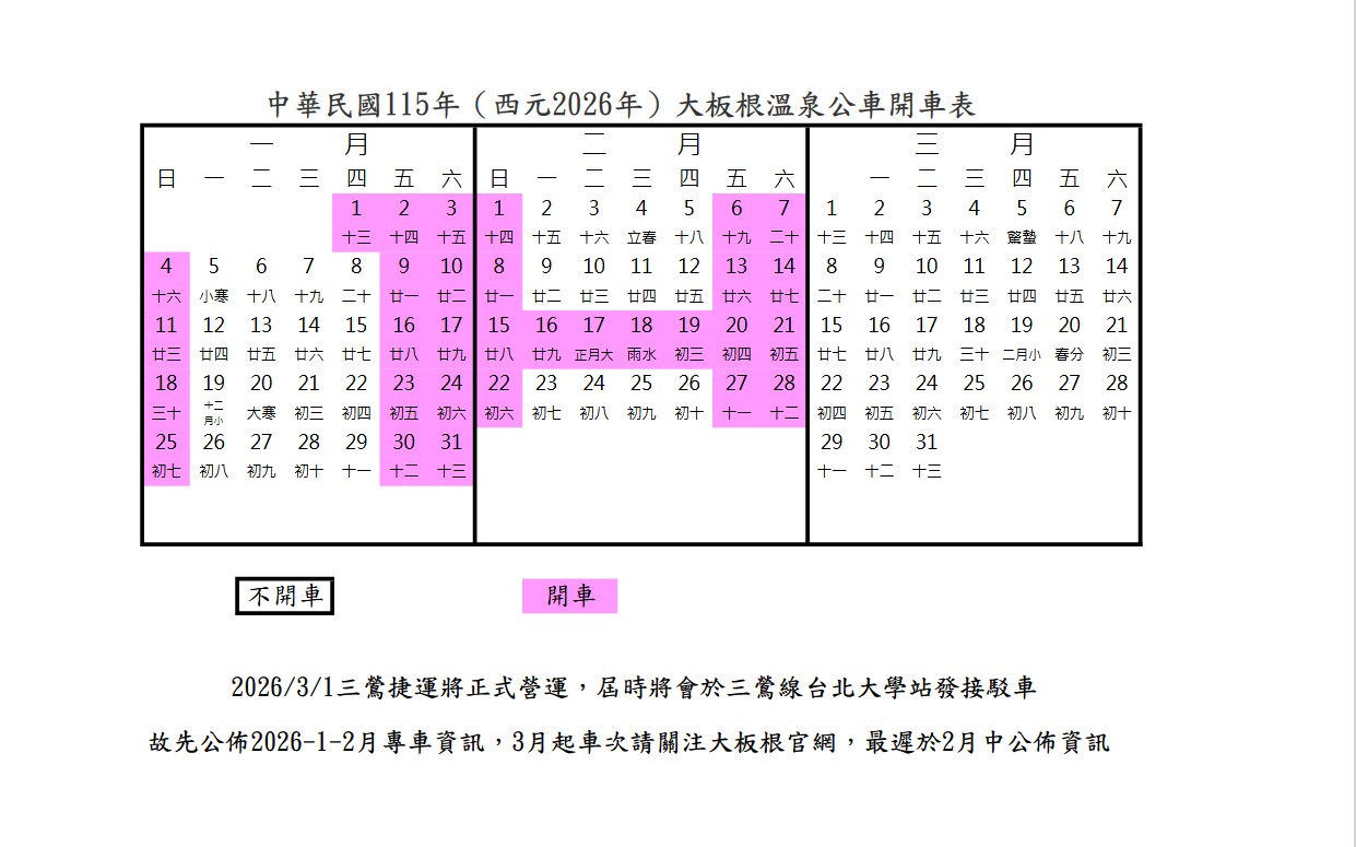●暑假期間 七月 、 八月每日行駛,及12/31溫泉公車皆有行駛。